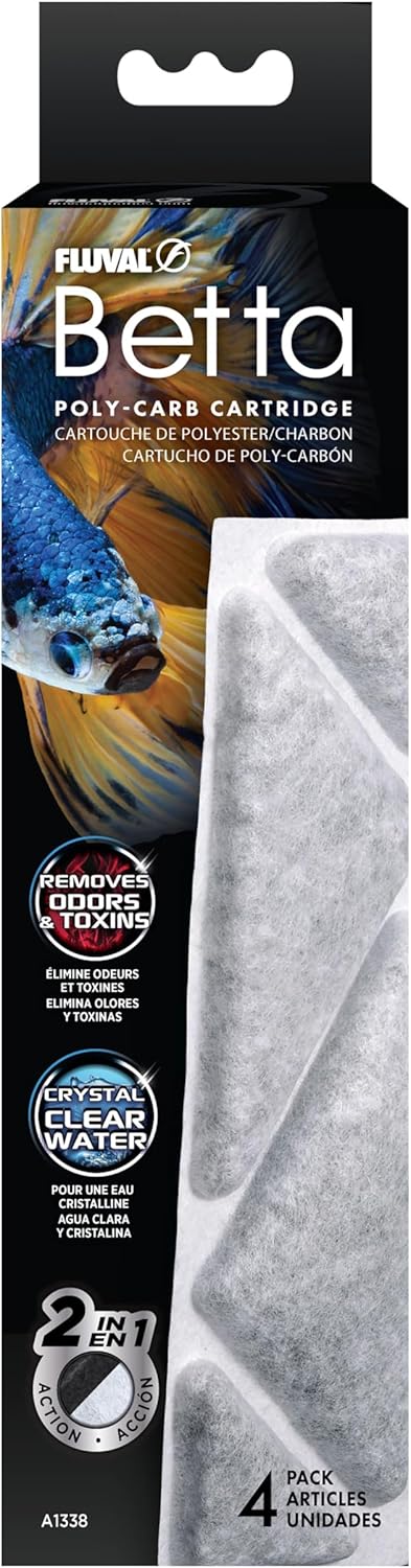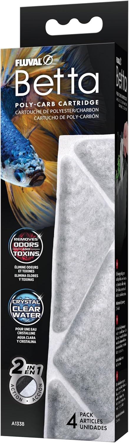 From the Fluval range, this Poly-Carb Cartridge is a dual-action internal filter insert designed to remove toxins and odours while keeping aquarium water crystal clear. Each 2-in-1 cartridge combines polyester and carbon layers to trap fine debris and filter out harmful substances, ensuring fresh, healthy water at all times. Supplied as a convenient 4 pack, the cartridges are easy to install in minutes with clear instructions provided. Each cartridge measures approximately 22cm high by 7cm wide.