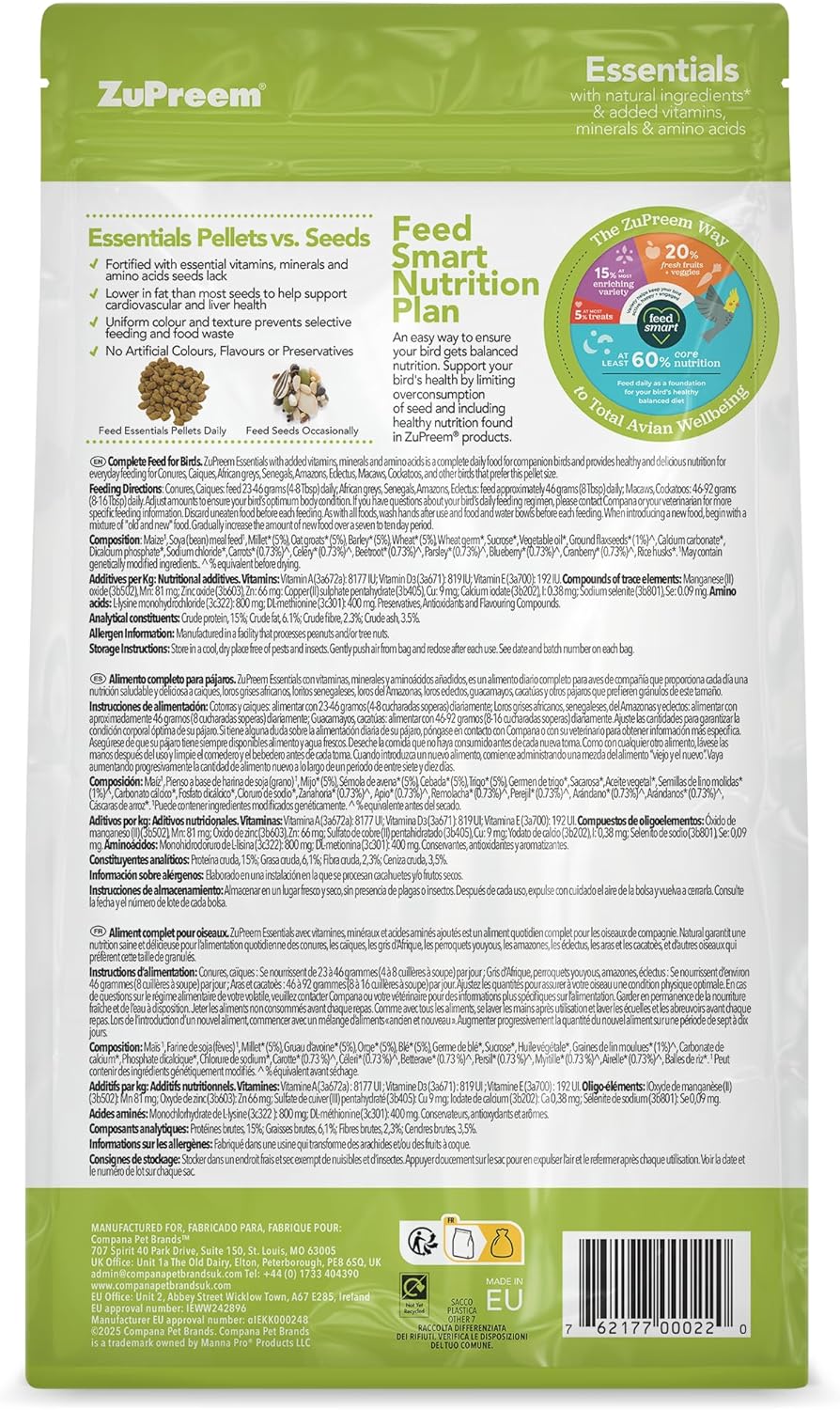 Zupreem Essentials Natural Complete Parrot Food 1.5kg