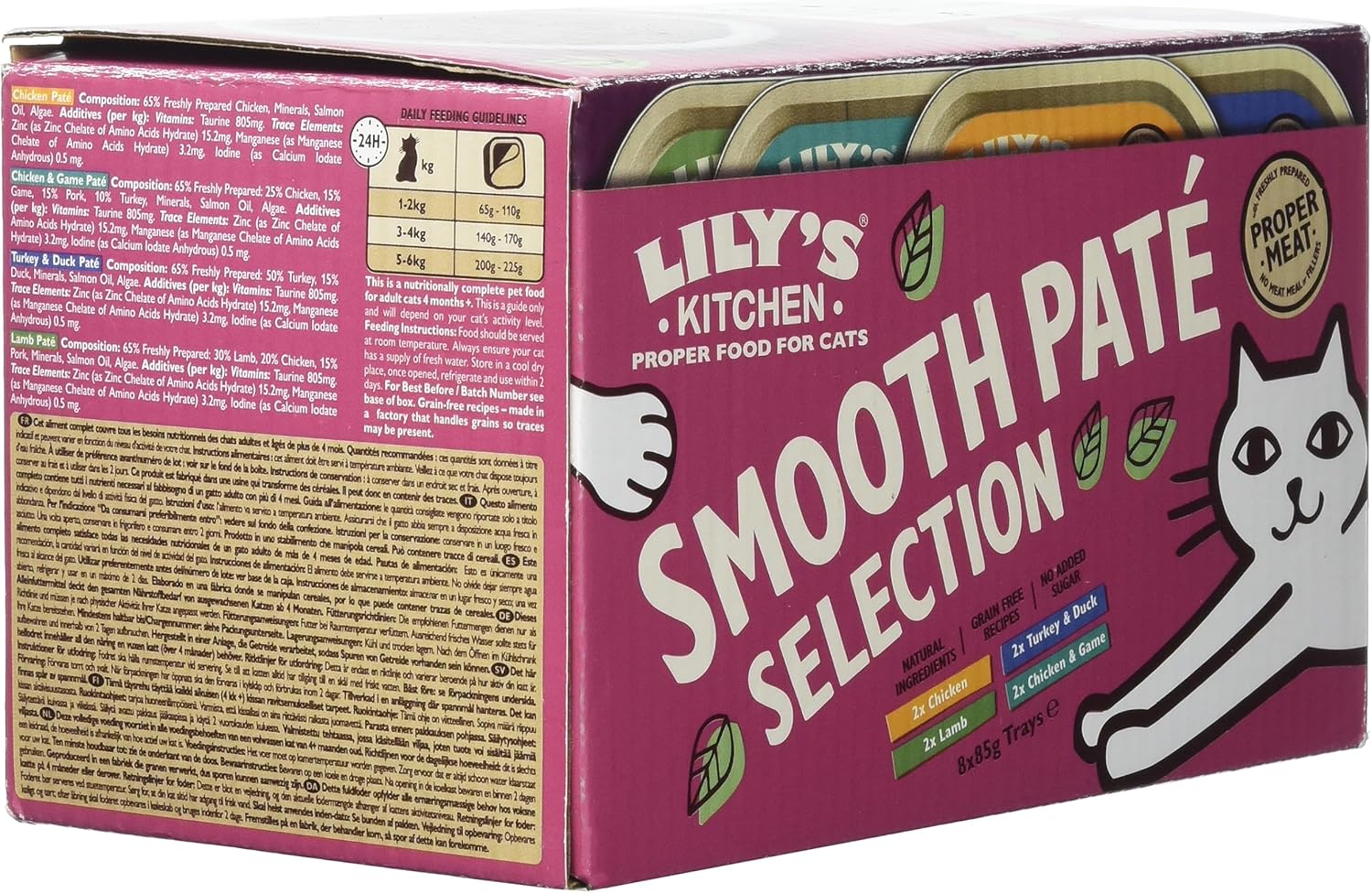 Our Smooth Paté wet cat food range is a firm favourite among feline foodies — and it’s easy to see why. With its irresistible smooth texture and rich, meaty flavour, each recipe is packed with proper meat and offal to deliver complete, balanced nutrition in every mouthful. This revamped multipack offers a delicious selection of delicate, grain-free* recipes to keep your cat purring for more. Each tray is made with natural ingredients and contains no added sugar — just real goodness your cat will love. This pack includes 2 x Smooth Paté Chicken for Adult Cats (85g), 2 x Smooth Paté Turkey with Duck for Adult Cats (85g), 2 x Smooth Paté Lamb for Adult Cats (85g), and 2 x Smooth Paté Chicken with Game for Adult Cats (85g). Suitable for adult cats, these nourishing meals are perfect for daily feeding or as a tasty rotation to keep things interesting. Made in a factory that handles grains, so traces may be present.