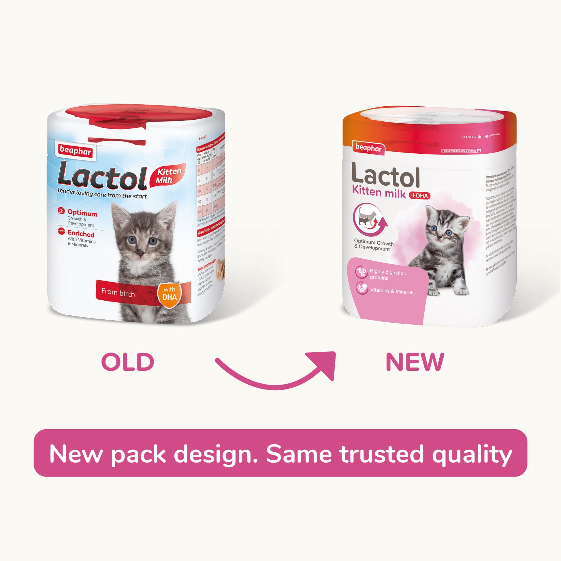 Beaphar Lactol has a superior amino acid content and is enriched with essential vitamins and minerals, providing a perfectly balanced complete feed. Made from easily digested whey products it closely resembles natural queen's milk. Ultra-filtration concentrates the proteins, and a slow drying process during production preserves the protein molecules, making it more nutritionally valuable. Contains added taurine, and DHA (Docosahexaenoic acid), which has been shown to help cognitive development and visual acuity.