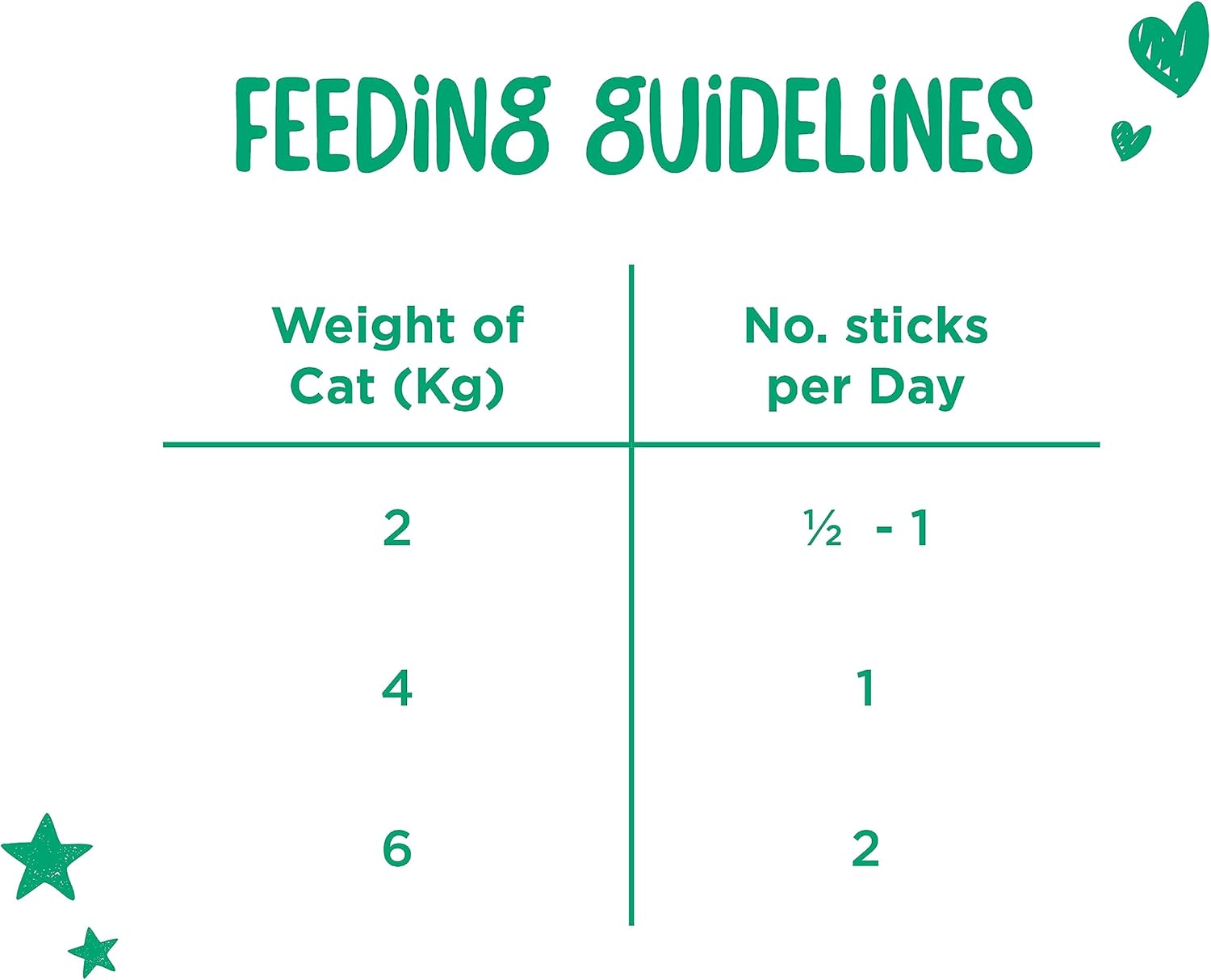 From a renown brand. Bringing treats your cat or kitten will love. Each stick is individually packaged for freshness. Made without cereals. Made with 95% meat. Ideal for all cats & kittens. Can be fed anytime as a treat. Moist meaty treats your furry friend won't be able to resist. Each pack weighs 30g & contains 6 sticks.