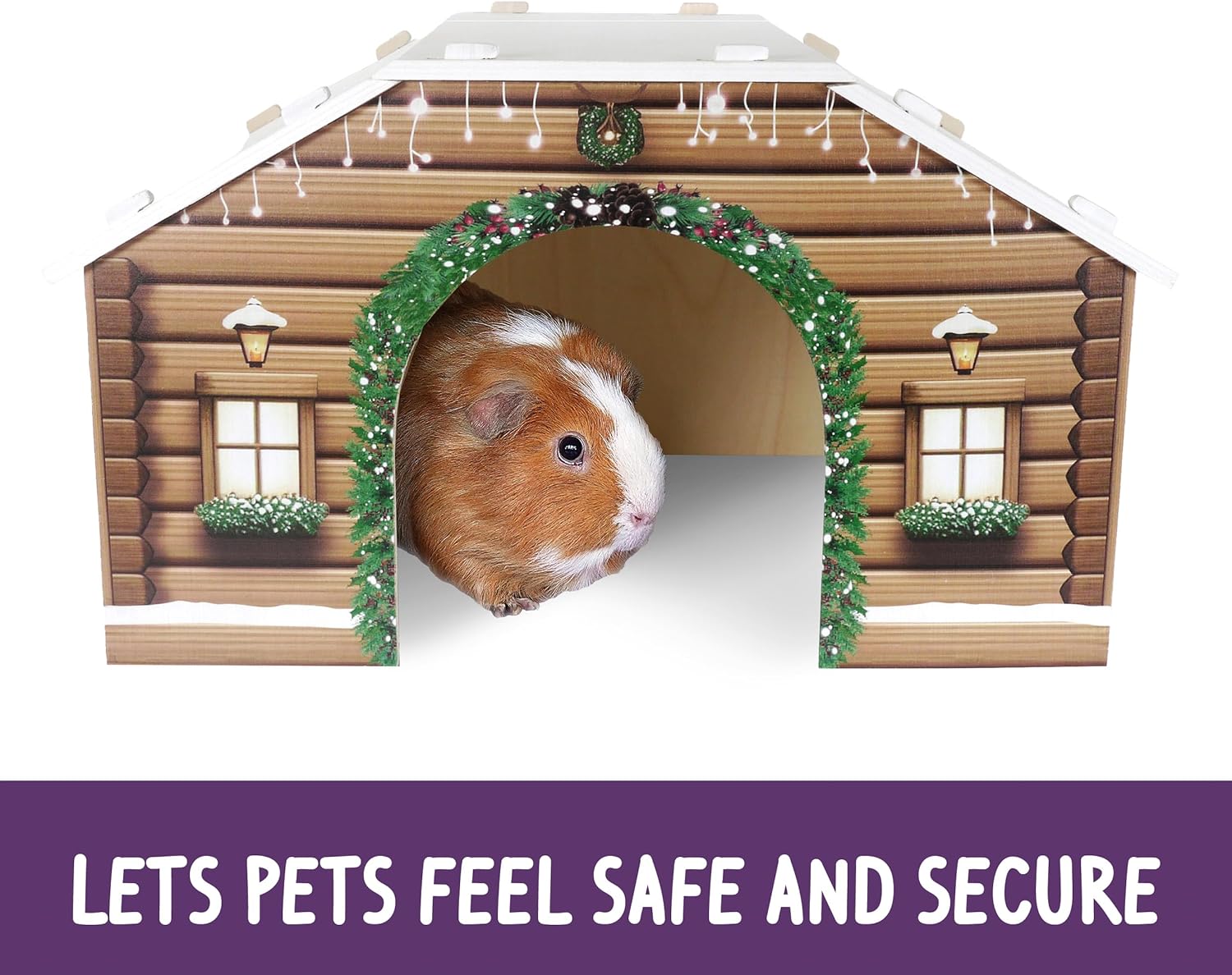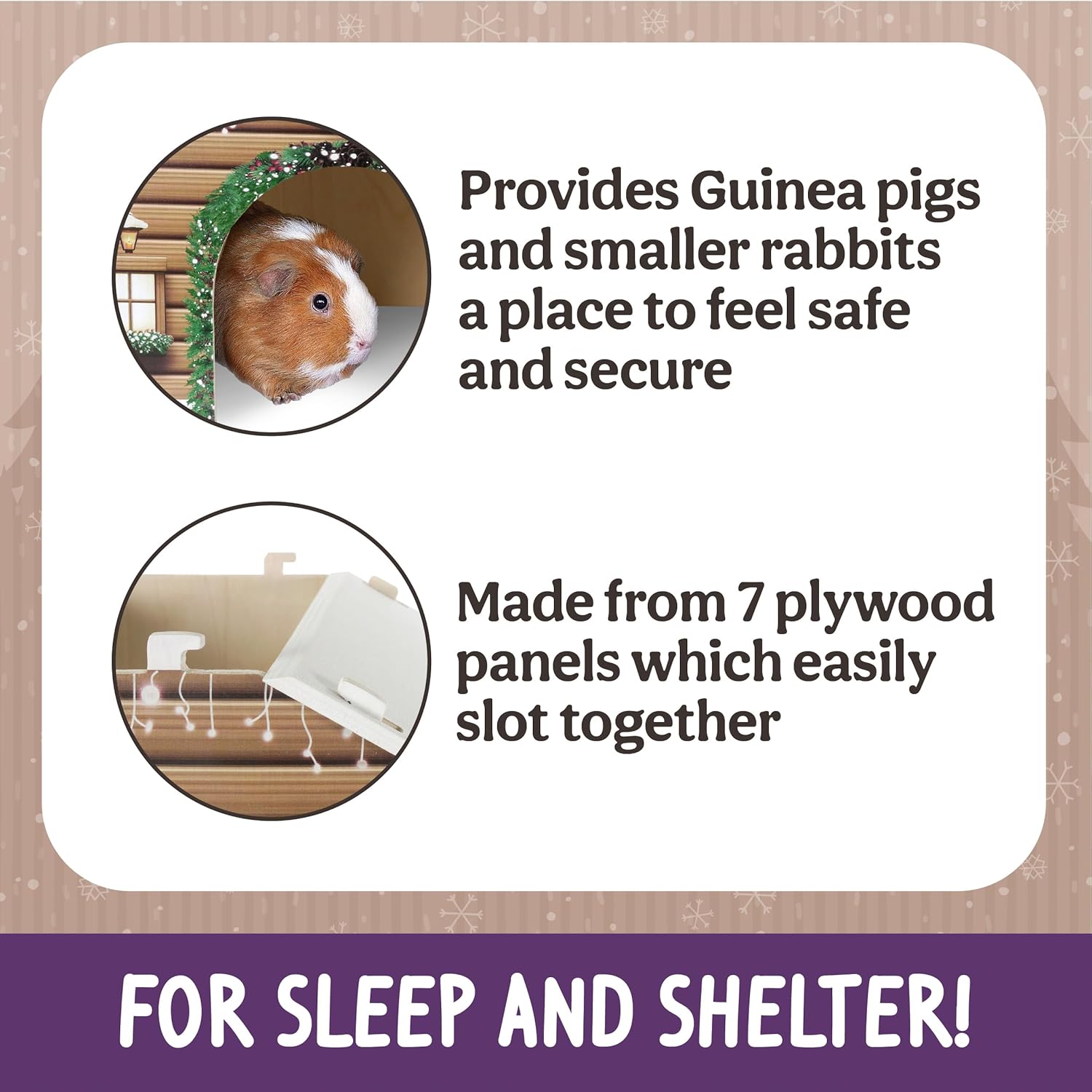 From the Rosewood range, this Festive Winter Cabin is the perfect cosy retreat to keep your furry friends warm and secure during the colder months. Designed for guinea pigs and smaller rabbits, it provides a safe and comfortable space for sleeping or shelter. Made from seven plywood panels that easily slot together, the cabin is simple to assemble with clear instructions included. Measuring 30 cm in length, 40.5 cm in width, and 24 cm in height, it combines practicality with festive charm for a cosy winter hideaway.