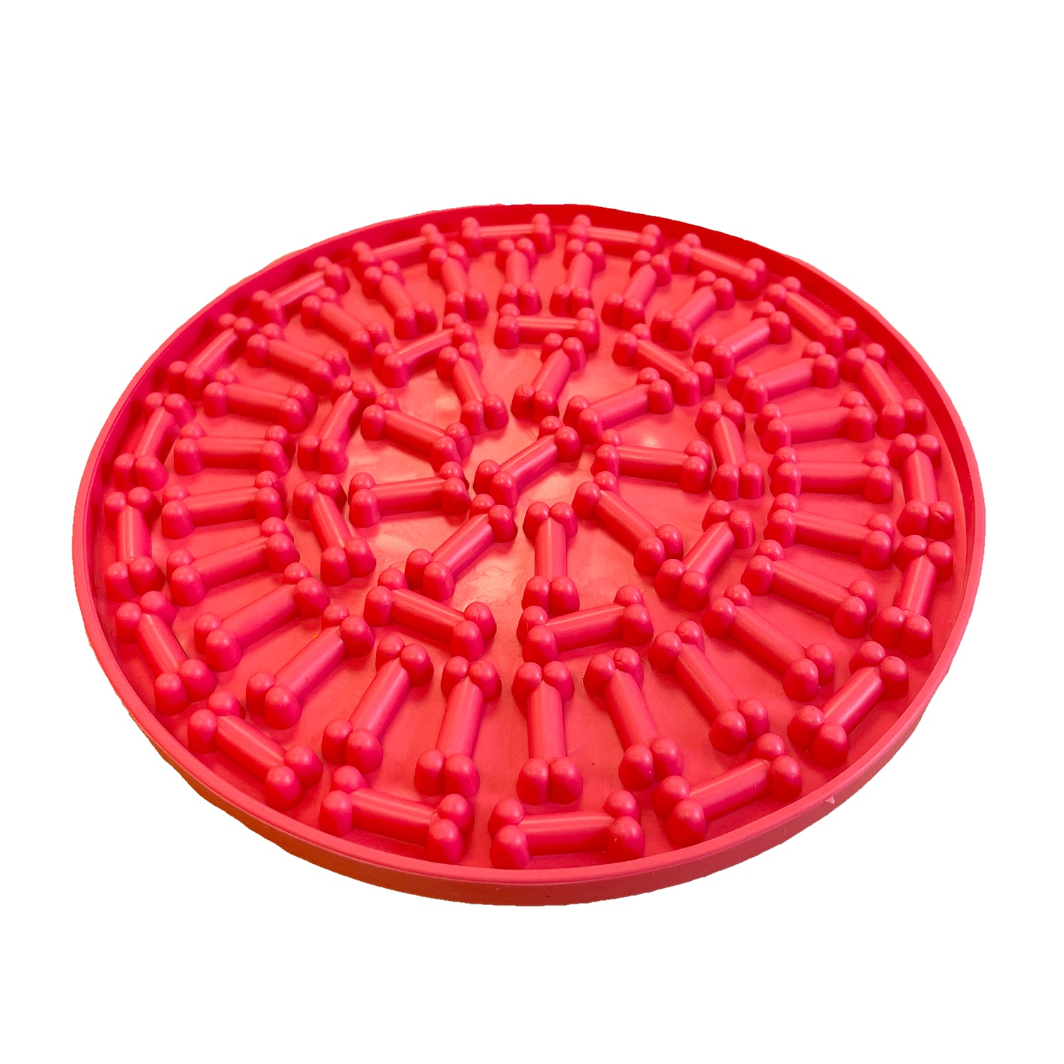 From the pet platter range. lick mat designed to keep your pet distracted & entertained. With suction cups for easy attachment to surfaces, prevents slipping & spillages. Great for use when bathing, grooming or trimming your pet begins, spread our dog’s favourite treat such as peanut butter or pate on the mat & stick to any flat surface. Helps to keep your pet occupied & reduces destructive behaviour. Dishwasher safe for easy cleaning after use. Portable & easy to take on your travels. Ideal for all dogs, puppies, cats & kittens. Circular lick mat red: 15 cm.