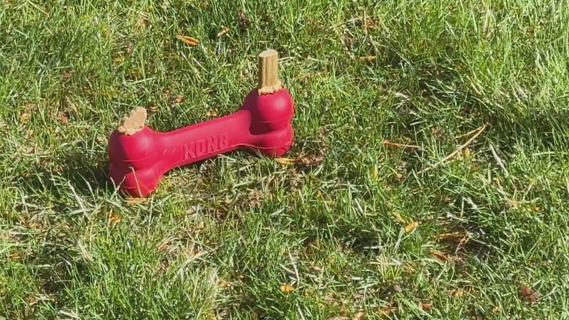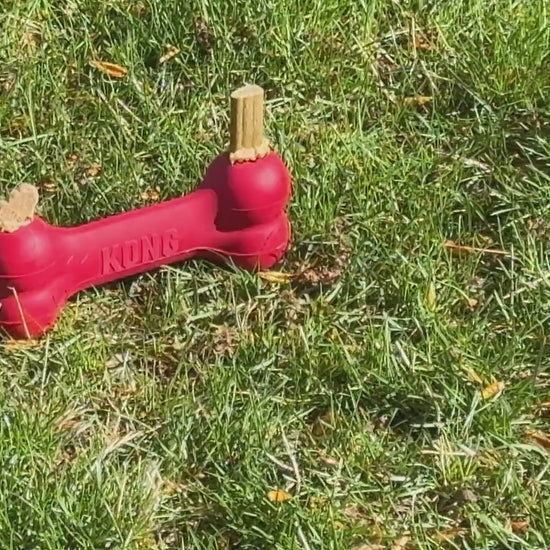 The KONG Extreme Goodie Bone™ toy engages dogs in tough chewing sessions. Made with KONG Extreme natural rubber, the Extreme Goodie Bone features patented Goodie Grippers™ to hold treats and kibble. Stuff and freeze to extend chewing time.