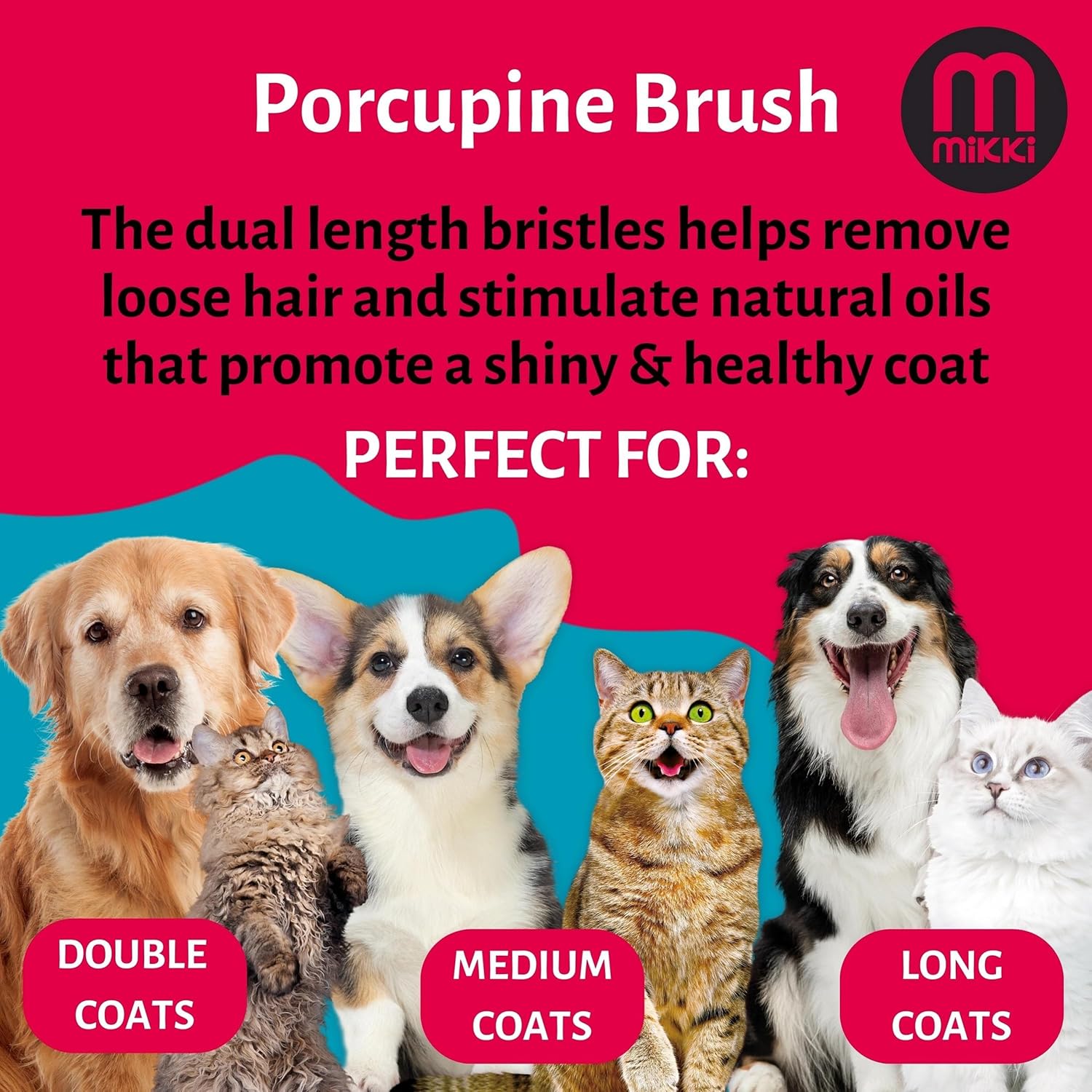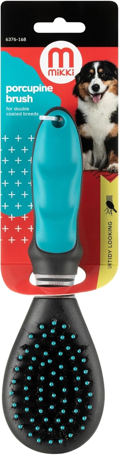 From the Mikki range, the Porcupine Brush is designed to keep your pet’s coat healthy, shiny and well-groomed. Featuring dual-length bristles, it removes loose and dead hair while stimulating natural oils for a glossy finish. The ergonomic, non-slip handle ensures a soft and comfortable grip, making grooming easier for you. Its flexi head helps reduce excess pressure on both your wrist and your pet, providing a more relaxed, gentle grooming experience. Suitable for both cats and dogs, it’s an essential tool for maintaining coat health.