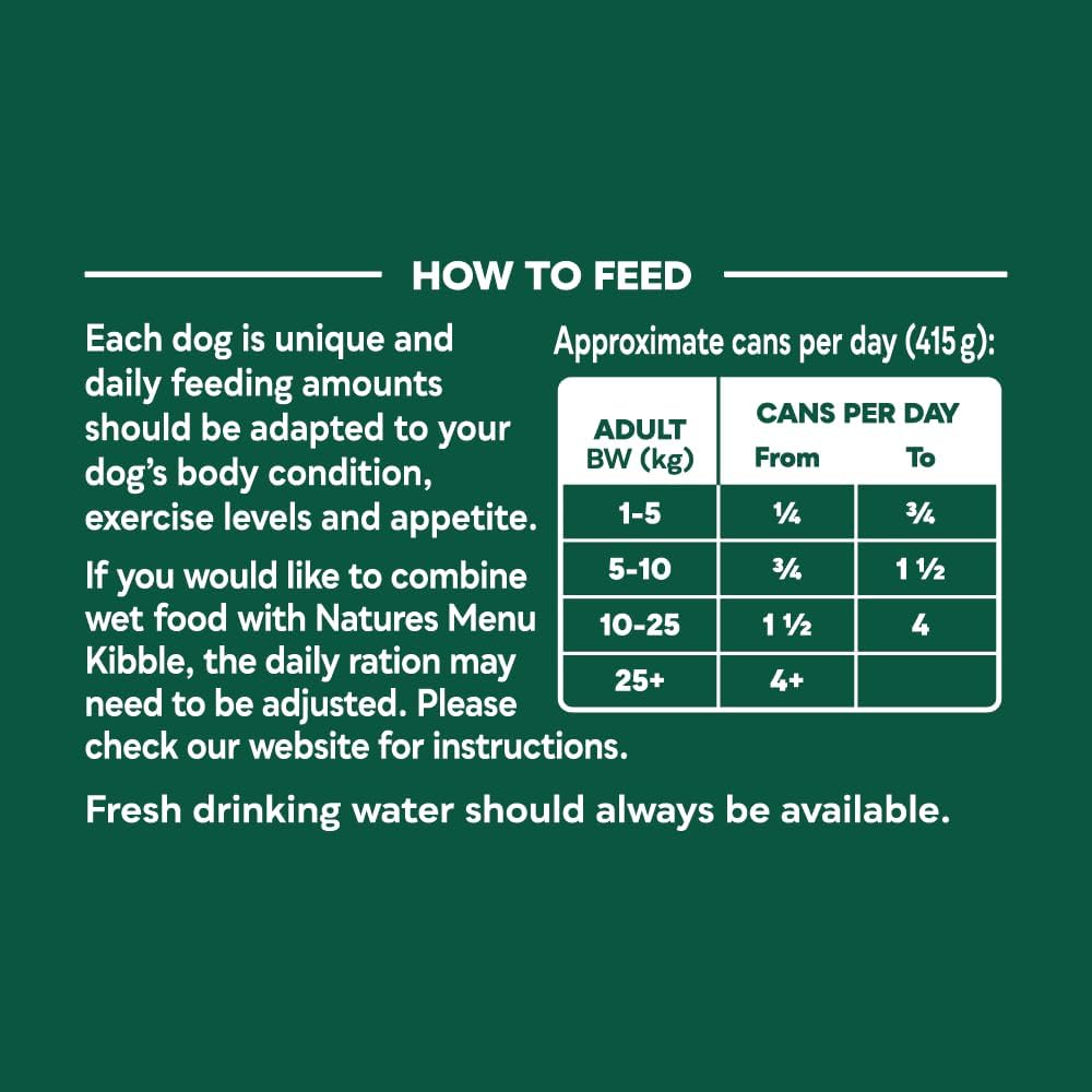 From the Natures Menu Range, this classic recipe features tender chicken with nutritious vegetables for a protein-rich, balanced diet. Perfect for maintaining energy, vitality, and overall health, it’s a complete meal free from artificial colourants or preservatives. Taking inspiration from traditional British cooking, the chicken and vegetable recipe combines trusted ingredients with expert formulation for a meal dogs can enjoy daily. 415g