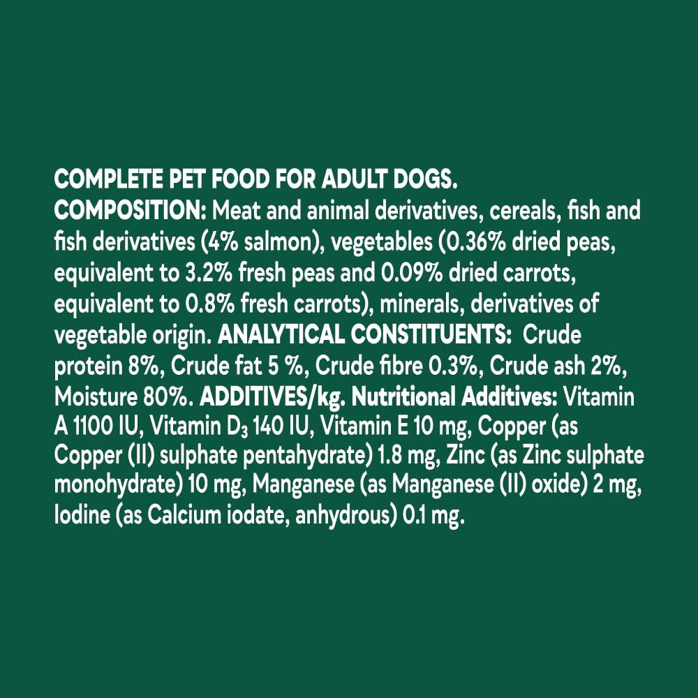 From the Natures Menu Range, this protein-rich complete meal combines quality salmon with fresh vegetables for a delicious and balanced diet. Naturally rich in omega oils, it helps promote healthy skin and a glossy coat while supporting muscle strength. Free from preservatives or colourants, this salmon and vegetable recipe is inspired by traditional British flavours, offering dogs of all breeds a clean and wholesome option. 415g
