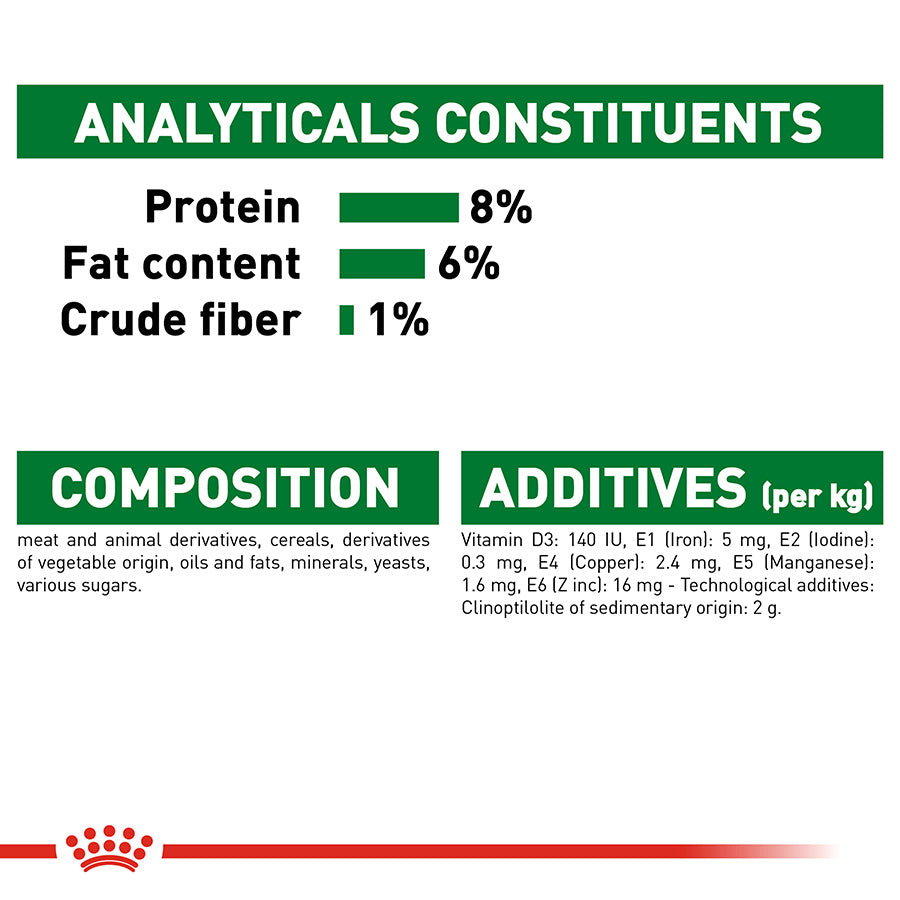 From the Royal Canin range, Royal Canin® Mini Puppy in Gravy is a complete and balanced wet food specially formulated to support the nutritional needs of small-breed puppies aged 2 to 10 months, with an expected adult weight of 4–10kg. During this rapid growth phase, your puppy’s bones, muscles, and immune system are developing fast, which is why this diet provides the precise nutrition needed to support healthy growth and development. Enriched with vitamins C and E, it helps strengthen natural defences while the immune system matures, while omega-3 fatty acids such as DHA promote healthy brain and vision development. Highly digestible proteins and beneficial prebiotics support good digestion and a balanced gut flora. The small, tender chunks in rich gravy are crafted for little jaws, providing a delicious texture and flavour even the fussiest puppies will enjoy. This wet food also supports healthy hydration and can be perfectly paired with Royal Canin® Mini Puppy dry kibble for a balanced mixed feeding routine. As your puppy approaches adulthood at around 10 months, you can transition them to Royal Canin® Mini Adult to continue supporting their long-term health and vitality.
