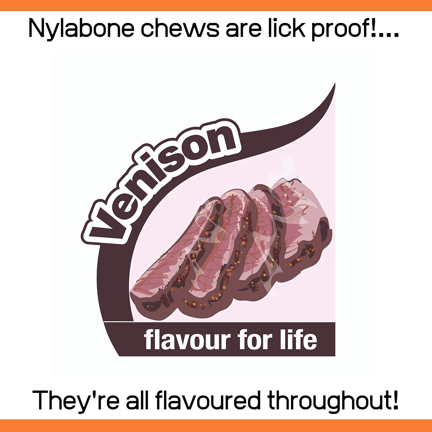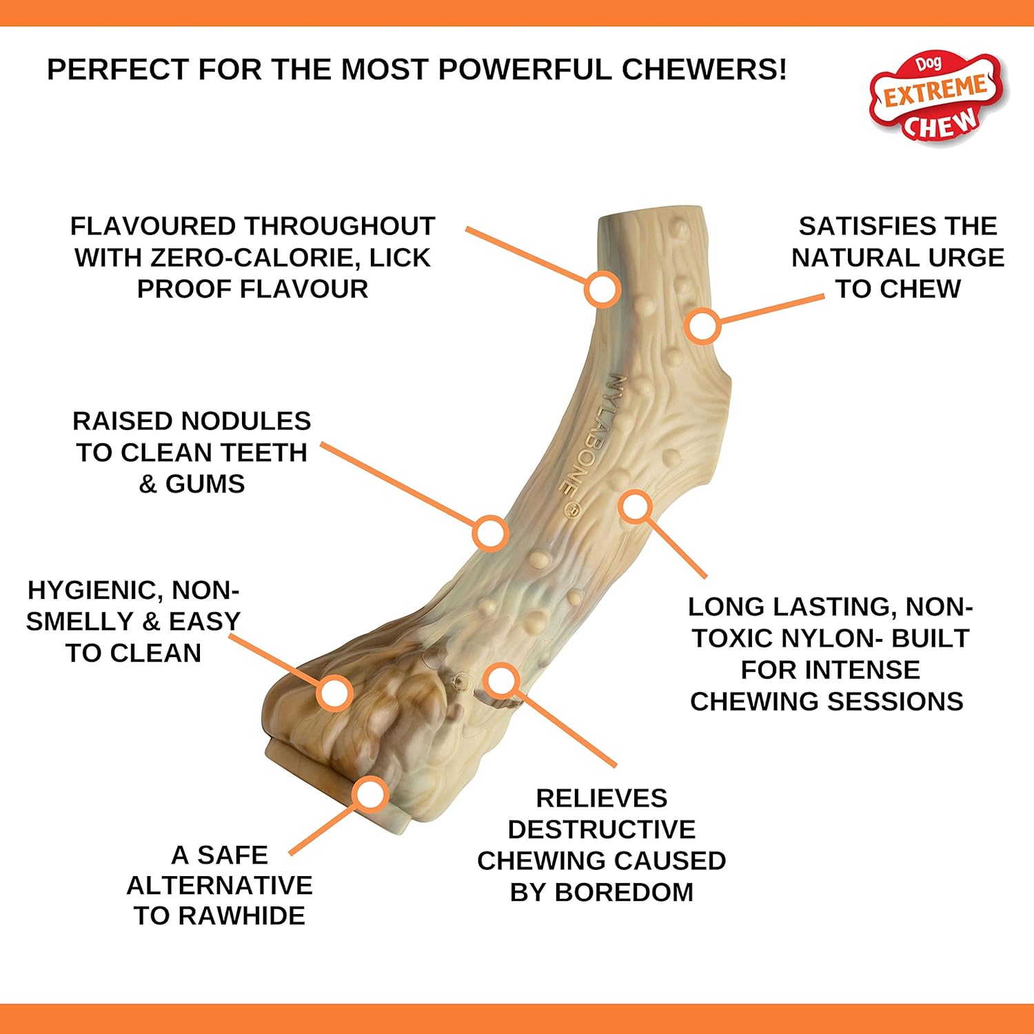 From the Nylabone Extreme range, this Large Venison Antler is built tough for powerful chewers who need a durable, long-lasting toy. Made from strong nylon with a natural antler-inspired shape, it helps clean teeth and reduce plaque and tartar while satisfying your dog’s natural chewing instincts. Infused with a tasty venison flavour throughout, it keeps dogs engaged for hours of safe, non-destructive chewing. The large size is ideal for bigger breeds, providing a safe and satisfying alternative to real antlers. Whilst tough, this toy is not indestructible.