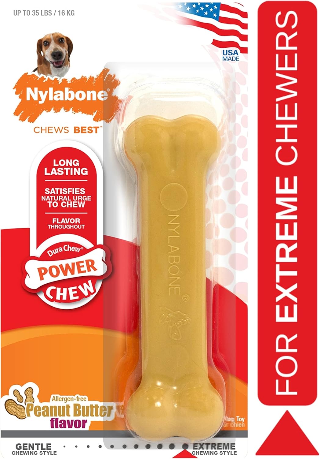 Perfect for any strong chewer. In a tasty peanut butter flavour for your pet. Made of tough nylon to ensure a long lifetime. Satisfies natural urges to chew and combats boredom. Sure to keep your pet entertained for hours. Bristles raised during chewing help clean teeth. Wolf (up to 16 kg).