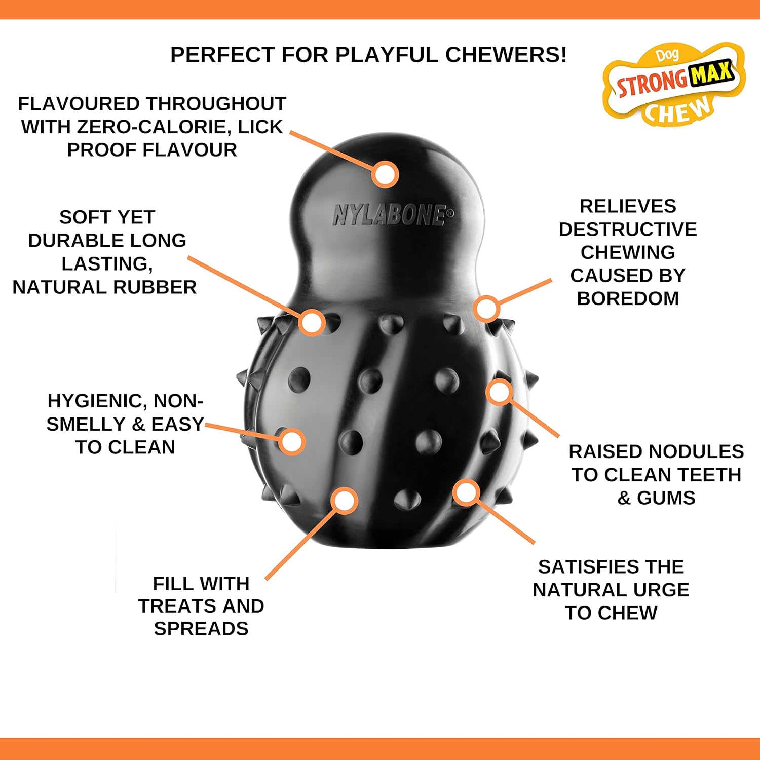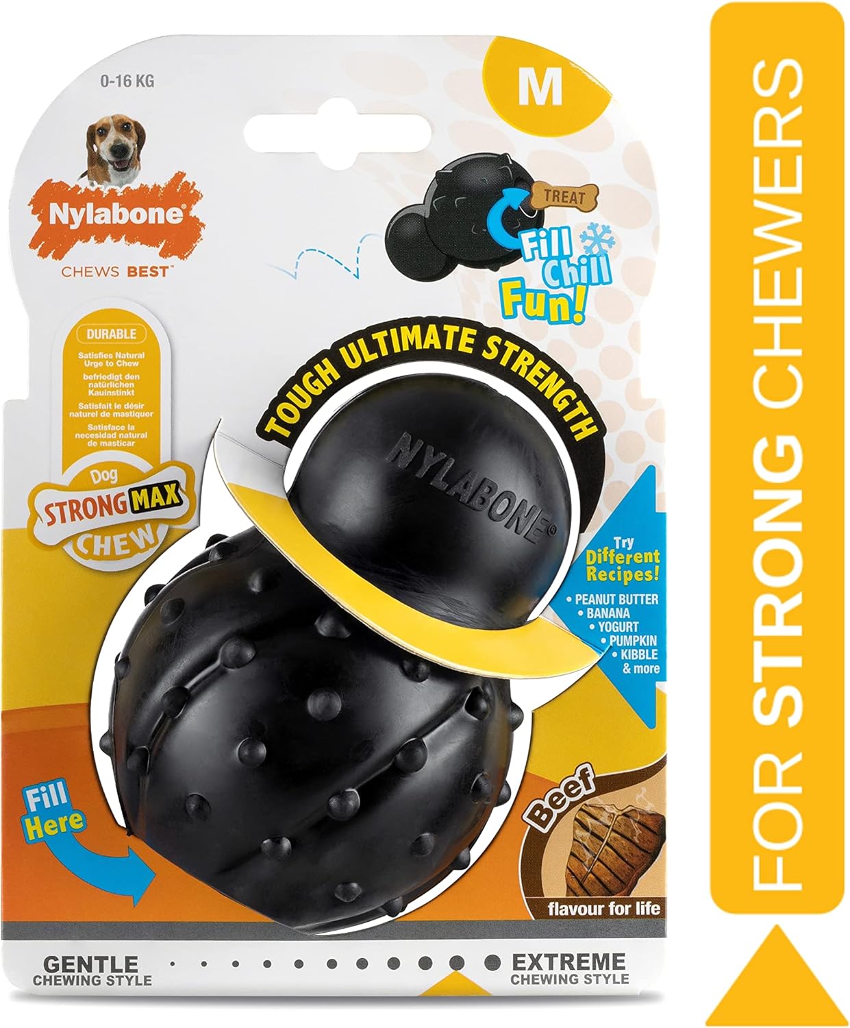 Ultimate rubber cone, made with durable long lasting natural rubber. Can be filled with treats & spreads to spark extra curiosity from your pet. Lifelong beef flavour throughout. Satisfies natural chewing urges & helps to relieve boredom. Textured nodules which help clean teeth & gums. Ideal for all medium to large dogs who love to chew. Medium 0-16kg.