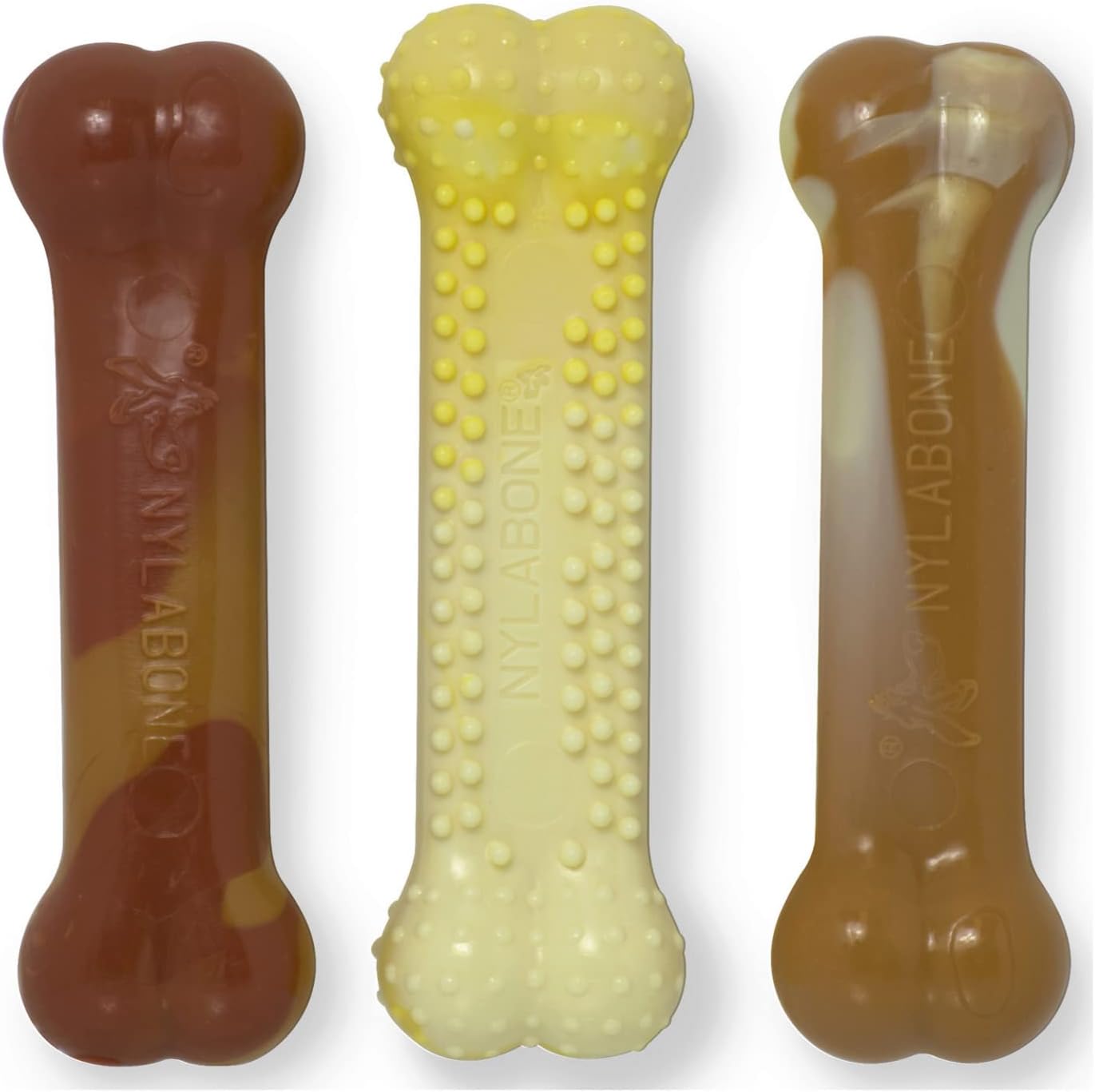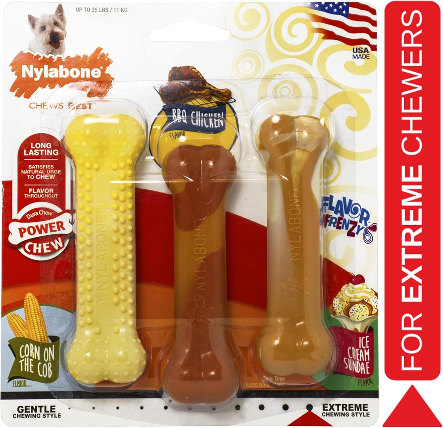 From a renown brand. A fantastic new triple variety pack. Designed to be chewed. With long lasting flavour. Satisfies the natural urge to chew. Creates hours of fun & helps prevent boredom for man's bestfriend. Triple pack includes: 1 x bbq chicken, 1 x corn on the cob, 1 x ice cream sundae. Designed for dogs up to 25lbs/11k