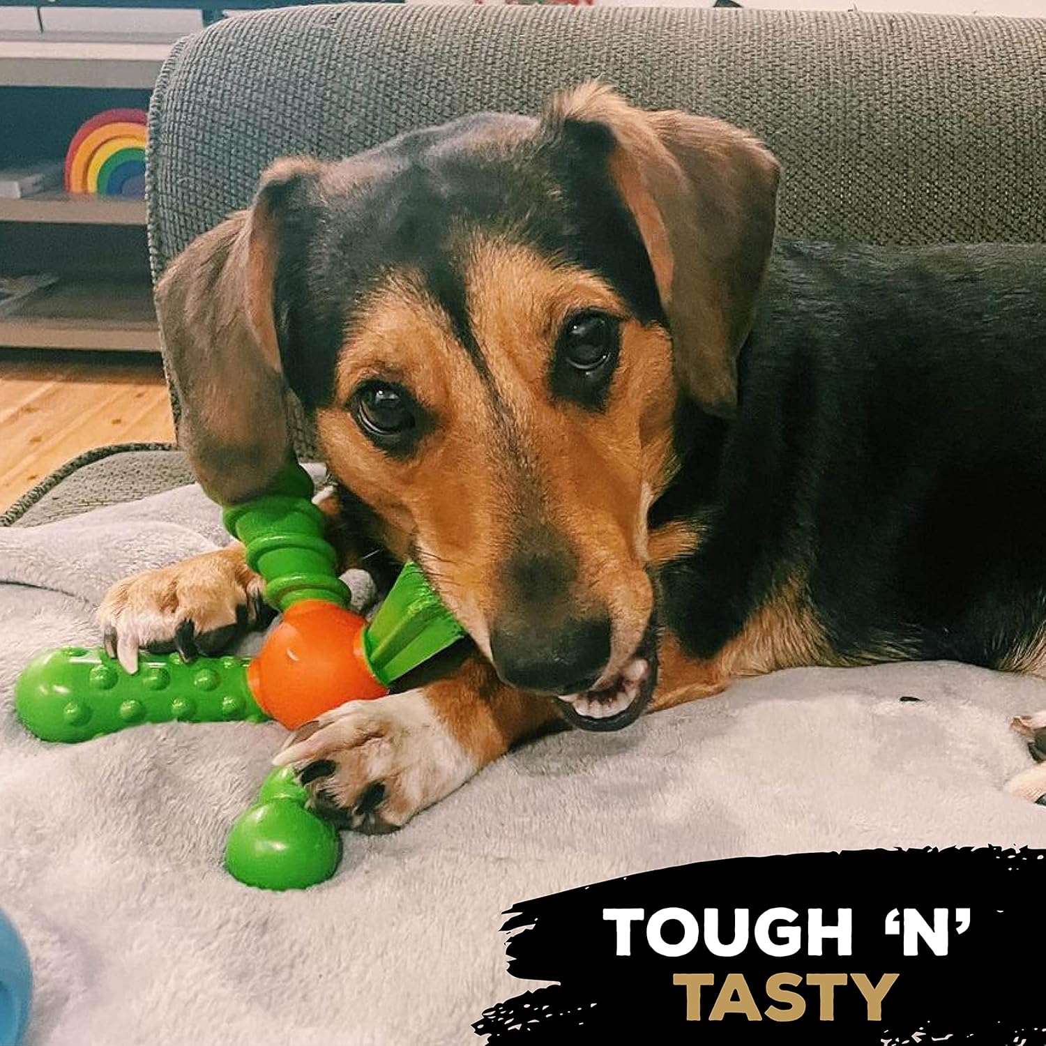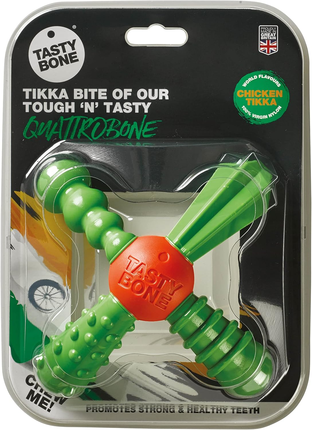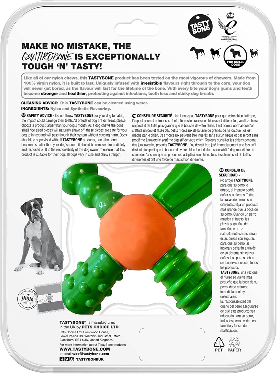 From the tastybone range. Made from 100% nylon. 4 different textures to provide hours of fun. Promotes healthy teeth & gums. Designed with strong chewers in mind. Small: Length: 17 cm Height: 8 cm Individual leg: 9 cm x 3 cm.