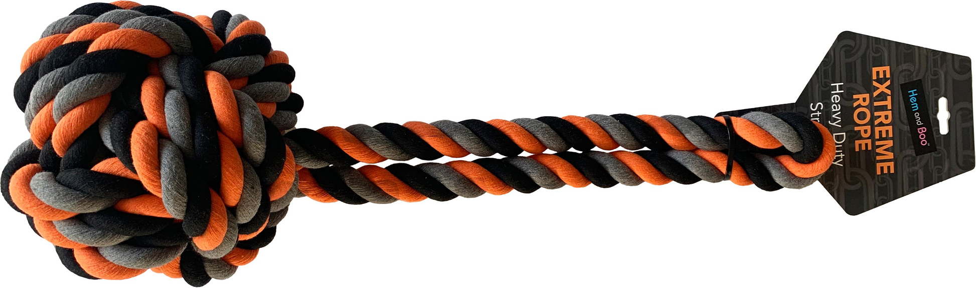 From the hem & boo range. Extreme heavy-duty rope toy for your four-legged friends. Made from heavy duty strong rope to withstand tough play. Perfect for games of fetch & tug of war. Ideal for all medium to xx large dogs who love to play. 2kg ball on heavy rope handle: 25” x 8”/ 64 x 20cm. Please note all measurements are manufacturer stated. Whilst tough this toy is not indestructible.