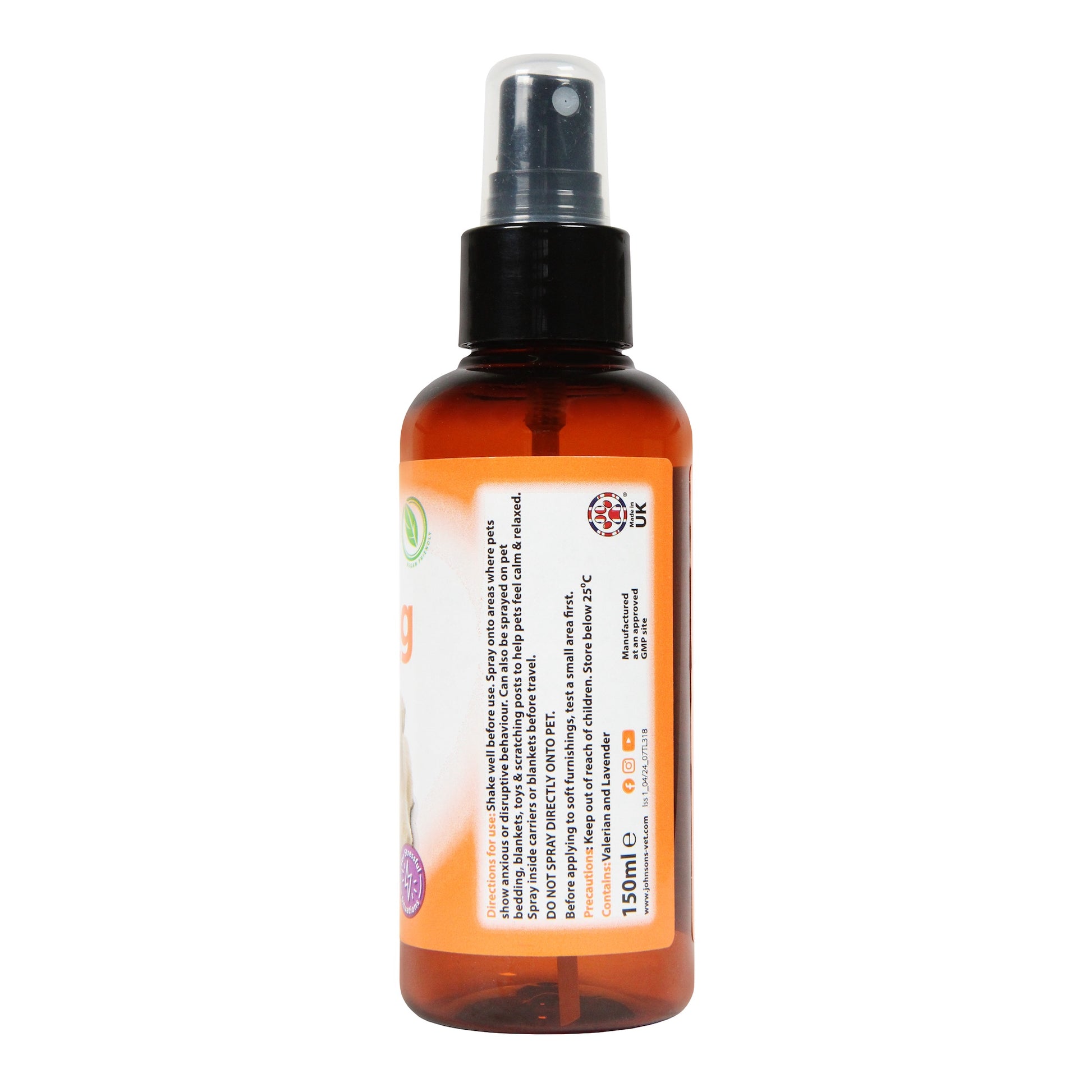 From the Johnson’s Veterinary range, this vegan-friendly calming spray is made with natural lavender and valerian to help soothe and relax dogs and cats. Ideal for reducing anxiety, stress, and aggressive behaviour, it’s perfect for use during fireworks, thunderstorms, vet visits, separation anxiety, and other stressful situations. Simply spray onto areas where your pet shows anxious behaviour, or apply to bedding, blankets, toys, or scratching posts to create a calming environment. Supplied in a 150ml bottle, this natural aid helps pets feel safe, calm, and relaxed. Do not spray directly onto your pet. All measurements are manufacturer stated.