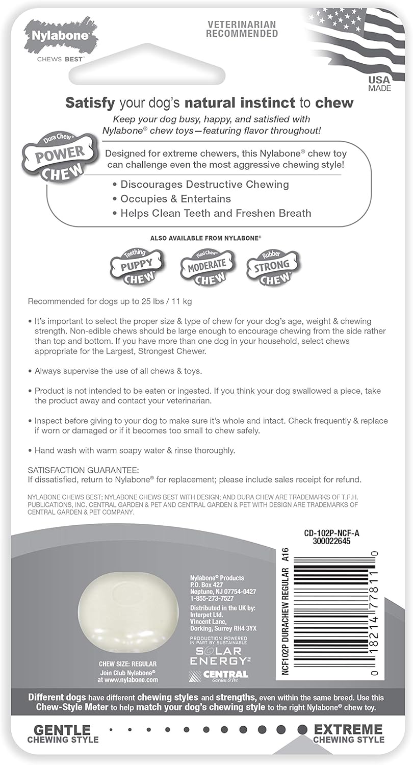 Perfect for any strong chewer. Made of tough nylon for a longer lifetime. Satisfies the natural urges to chew and combats boredom. Helps to clean teeth and gums. Regular (up to 11 kg).