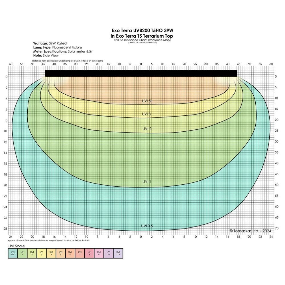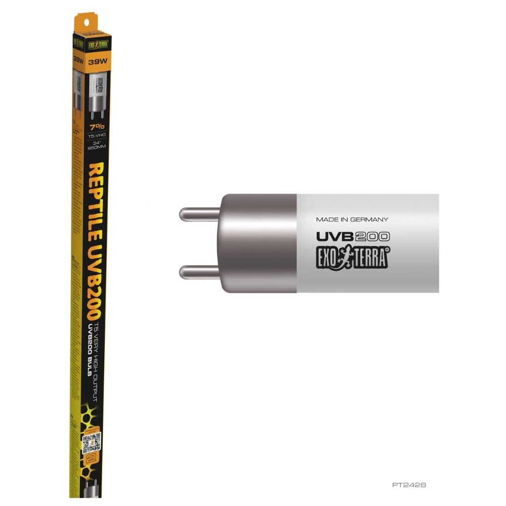 From the Exo Terra range, the Reptile UVB200 T5 VHO 39W 34" bulb provides an extra-strong UVB output tailored for reptiles that thrive under intense, concentrated UV exposure. Delivering powerful UVB along with balanced UVA and visible light, it supports robust Vitamin D3 synthesis and efficient calcium absorption—ideal for desert species or reptiles naturally exposed to strong sunlight. The UVA component encourages essential behaviours such as appetite, activity, and reproduction. Designed for long-lasting performance, this bulb maintains consistent UV levels for 12+ months and suits all terrarium environments. The UVB200 (7%) output ensures enhanced UV exposure to meet the needs of high-UV species. Please note: measurements are manufacturer stated.