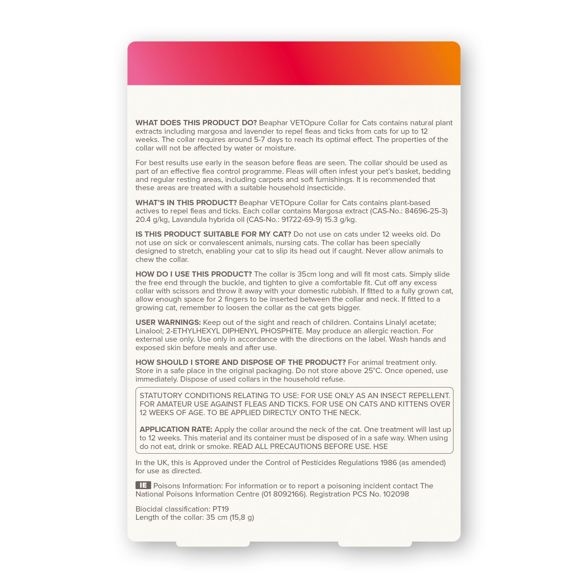 From the Beaphar range, this green Flea Repellent Cat Collar provides up to 12 weeks of natural flea protection using plant extracts including margosa and lavender. Measuring 35cm and easy to fit, the collar includes a built-in safety link designed to stretch if your cat gets caught, allowing them to slip free safely. Water-resistant and effective within 5–7 days of application, it’s ideal for all cats and should be used early in the season as part of a complete flea control programme.